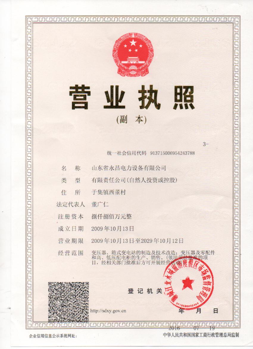山東省永昌電力設(shè)備有限公司急用戶所急,想用戶所想,造一流產(chǎn)品,創(chuàng)中國名牌。品質(zhì)卓越,值得信賴!